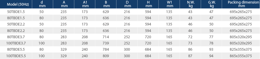 Освен това помпите от серията TBDE са оборудвани с вградена интелигентна система за управление, която позволява автоматична работа. Тази функция помага на потребителите да намалят разходите за електроенергия на строителни или промишлени обекти.и и др..