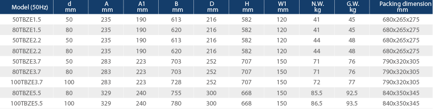 Помпите от серията TBZE са оборудвани с вградена интелигентна система за управление, която позволява автоматична работа. Тази система помага на потребителите да намалят консумацията на енергия, което я прави рентабилно решение за строителни или промишлени обекти.